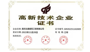 喜訊,重慶達康建筑工程有限公司順利通過重慶市科學(xué)技術(shù)局、重慶市財政局、國家稅務(wù)總局重慶市稅務(wù)局等部門的聯(lián)合評審驗收,被正式認定為“高新技術(shù)企業(yè)”,榮獲《高新技術(shù)企業(yè)證書》。